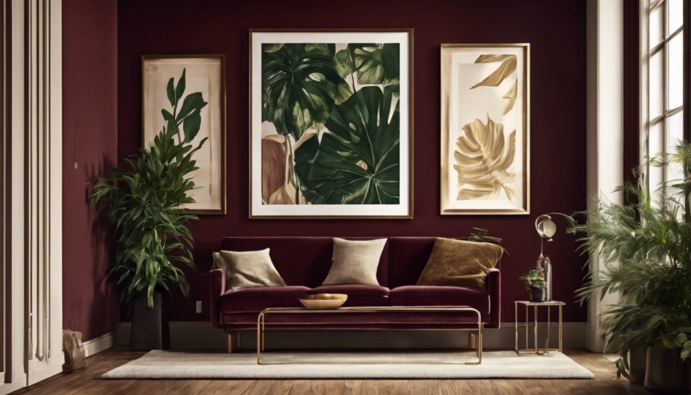 Kiedy chcesz ulepszyć burgundowe ściany, wprowadzenie wzorów może dodać dynamicznego charakteru twojej przestrzeni.