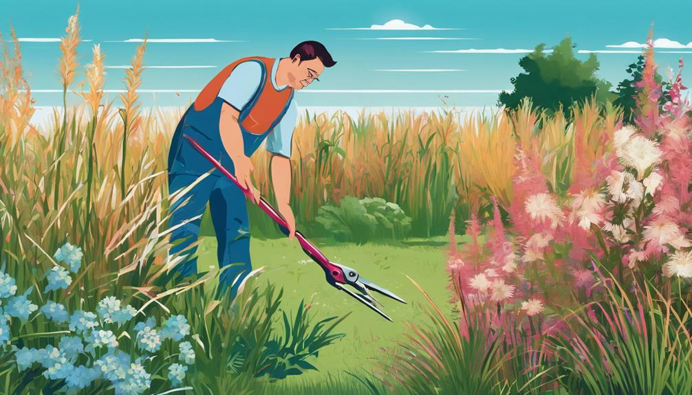 • Przycinanie: Przytnij trawy do kilku cali nad ziemią późną zimą lub wczesną wiosną. To zachęca do nowego wzrostu.