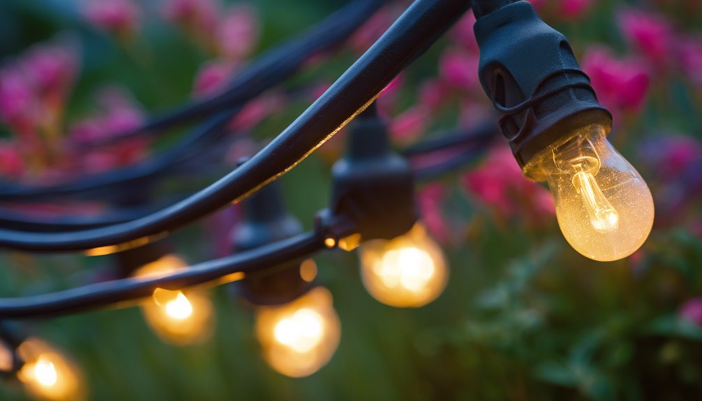 Aby uzyskać trwałe oświetlenie ogrodowe, należy wybrać kable przeznaczone do użytku na zewnątrz, zaprojektowane w celu wytrzymania wilgoci i ekspozycji na promieniowanie UV. Kable miedziane oferują lepszą przewodność, podczas gdy aluminium jest bardziej budżetową opcją, ale mniej trwałą. Upewnij się, że oceny napięcia twoich kabli spełniają lub przewyższają wymagania twoich opraw oświetleniowych, aby zapobiec przegrzewaniu się i stratom energii. Wybierz grubsze kable, aby zminimalizować spadek napięcia na dłuższych odległościach. Dodatkowo, priorytetem powinny być kable z wysokiej jakości izolacją, aby chronić przed czynnikami środowiskowymi. Przestrzeganie najlepszych praktyk instalacyjnych dodatkowo zwiększy trwałość twojego systemu. Odkryjesz więcej na temat rodzajów kabli oraz wskazówek dotyczących instalacji, które mogą poprawić twoje ustawienia oświetlenia ogrodowego.