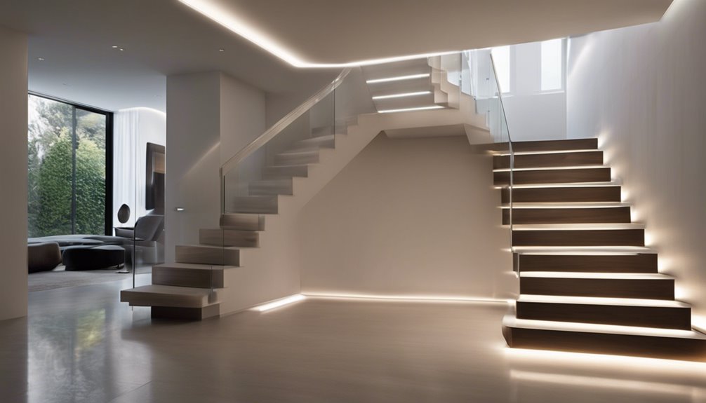 Incorporating the right lighting for your staircase is like adding the final brushstroke to a masterpiece; it enhances both safety and style. By choosing from various options like LED lights, wall sconces, or recessed fixtures, you can create a well-lit, modern space that complements your home. Don't forget to consider smart features for added convenience and safety. With proper positioning and maintenance, your staircase will not only shine but also ensure everyone navigates it safely.