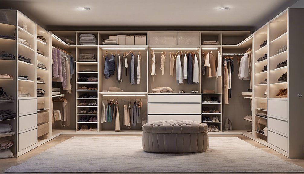 Incorporating the right lighting into your wardrobe can truly make a world of difference in how you organize your space. With options like LED lights and motion sensors, you'll find what you need in a snap. Remember, it's not just about illumination; it's about creating a welcoming environment. By shining a light on your wardrobe, you're not just brightening it up—you're also keeping clutter at bay. So go ahead, let your wardrobe shine!