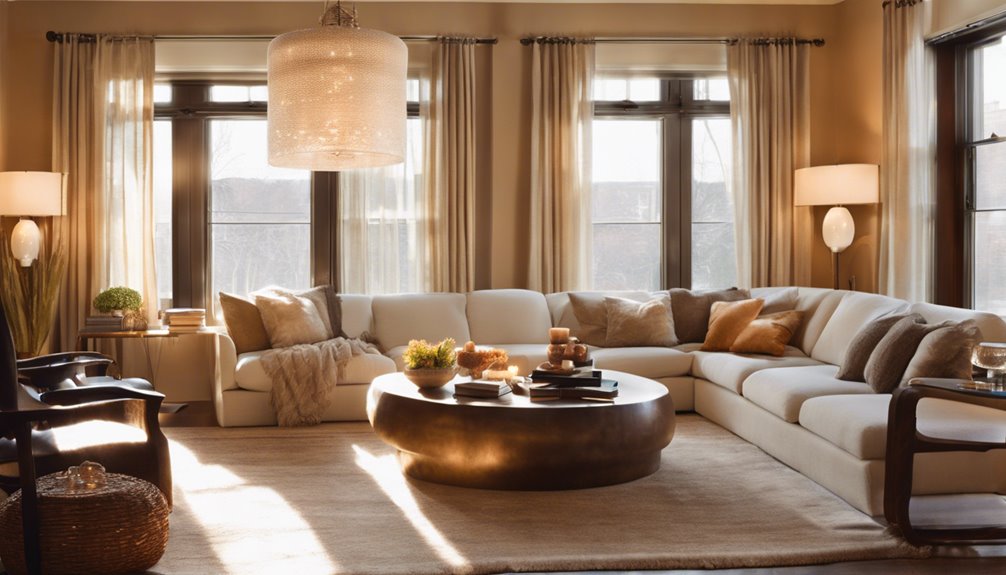 Aby stworzyć przytulny salon, warto skupić się na ciepłym, warstwowym oświetleniu. Użyj żarówek w zakresie 2700K do 3000K, aby uzyskać zapraszający blask. Wprowadź lampy podłogowe i stołowe, aby dodać miękkiego światła ambientowego, umieszczając je w pobliżu miejsc do siedzenia, aby stworzyć przyjazną atmosferę. Rozważ oświetlenie akcentujące, takie jak lampki choinkowe lub kinkiety, aby podkreślić dekoracje. Upewnij się, że używasz ściemniaczy, aby dostosować jasność w zależności od nastroju. Mieszanie różnych źródeł światła również dodaje głębi i ciepła twojej przestrzeni. Jest jeszcze wiele do odkrycia na temat tworzenia tej przytulnej atmosfery, więc kontynuuj!