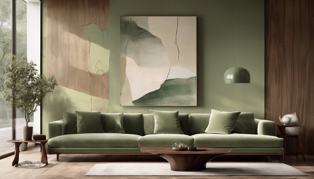 - Delikatna zieleń szałwii: Ten ziemisty odcień wprowadza poczucie spokoju i doskonale pasuje do rustykalnych wykończeń drewnianych, sprawiając, że przestrzeń staje się przytulna i świeża.