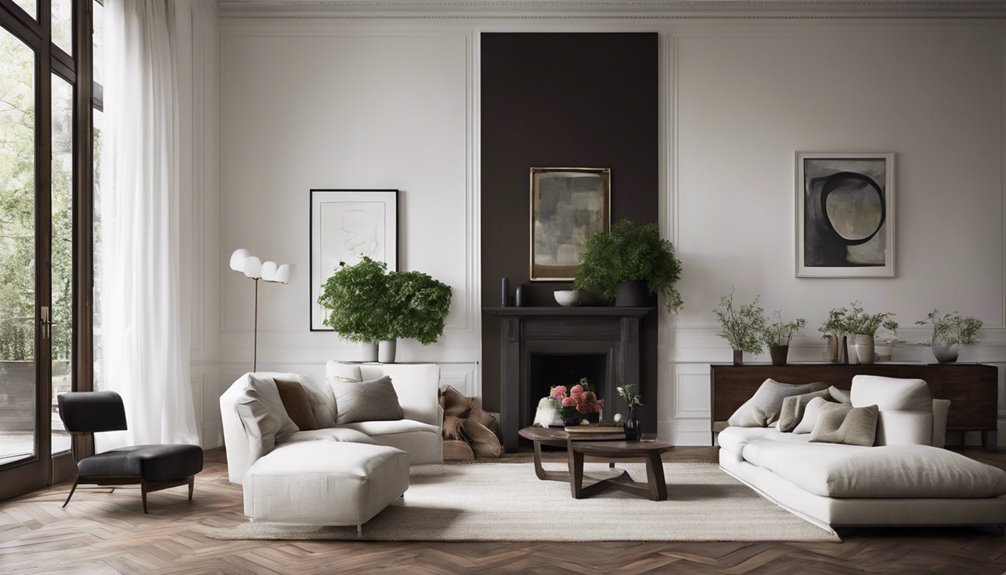 Aby osiągnąć idealną harmonię między ścianami a ciemnymi podłogami, zacznij od zrozumienia teorii koloru. Jaśniejsze kolory ścian, takie jak delikatne odcienie szarości lub pastele, tworzą uderzający kontrast z ciemnymi podłogami, zwiększając interes wizualny. Rozważ wprowadzenie różnorodnych tekstur, takich jak gładkie tkaniny obok strukturalnych materiałów, aby dodać głębi. Użyj dodatków, takich jak kolorowe poduszki lub efektowne lampy, aby zjednoczyć przestrzeń. Dostosuj swoją paletę kolorów sezonowo, aby uzyskać świeży wygląd. Zwróć uwagę na oświetlenie, zwiększając naturalne światło za pomocą źródeł ambientowych, aby wzmocnić ciepło. Każdy wybór kształtuje atmosferę twojego pokoju, a ty odkryjesz więcej wskazówek, aby doskonalić swoją przestrzeń.