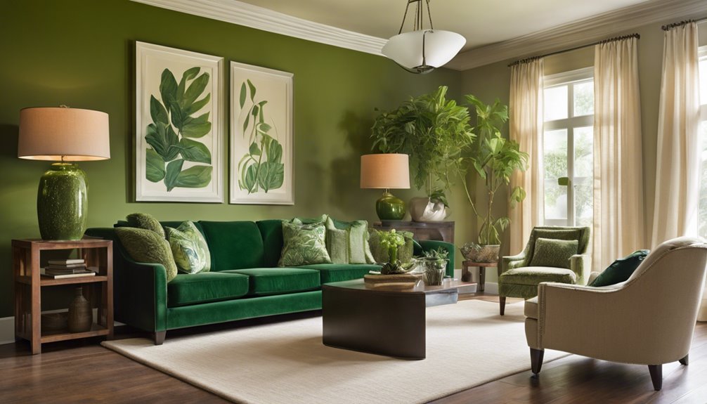 Dla opcji podłogowych, które uzupełniają zielone akcenty ścienne, rozważ jasne drewno lub neutralne płytki. Te wybory poprawiają koordynację kolorów, tworząc harmonijną przestrzeń. Unikaj ciemnych podłóg, które mogą przyćmić twoje żywe zielone akcenty i zakłócić równowagę.